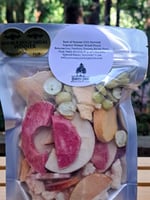 Ingredients: *Organic Garlic, *Organic Onion, *Organic Tomato. *Organic Bell Pepper, *Organic Genovese Basil, *Organic Rosemary, *Organic Thyme, *Organic Oregano, * Organic Bell Pepper, * Organic Tomato, * = Freeze Dried