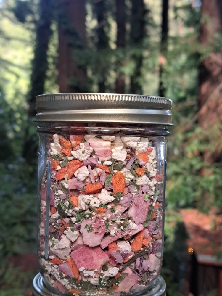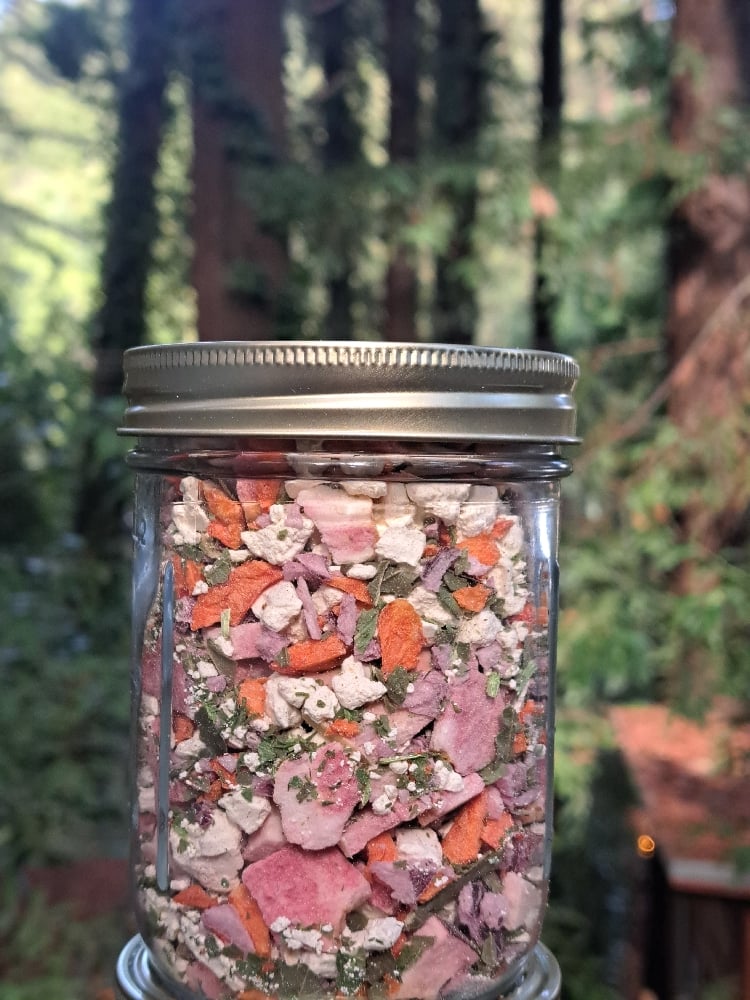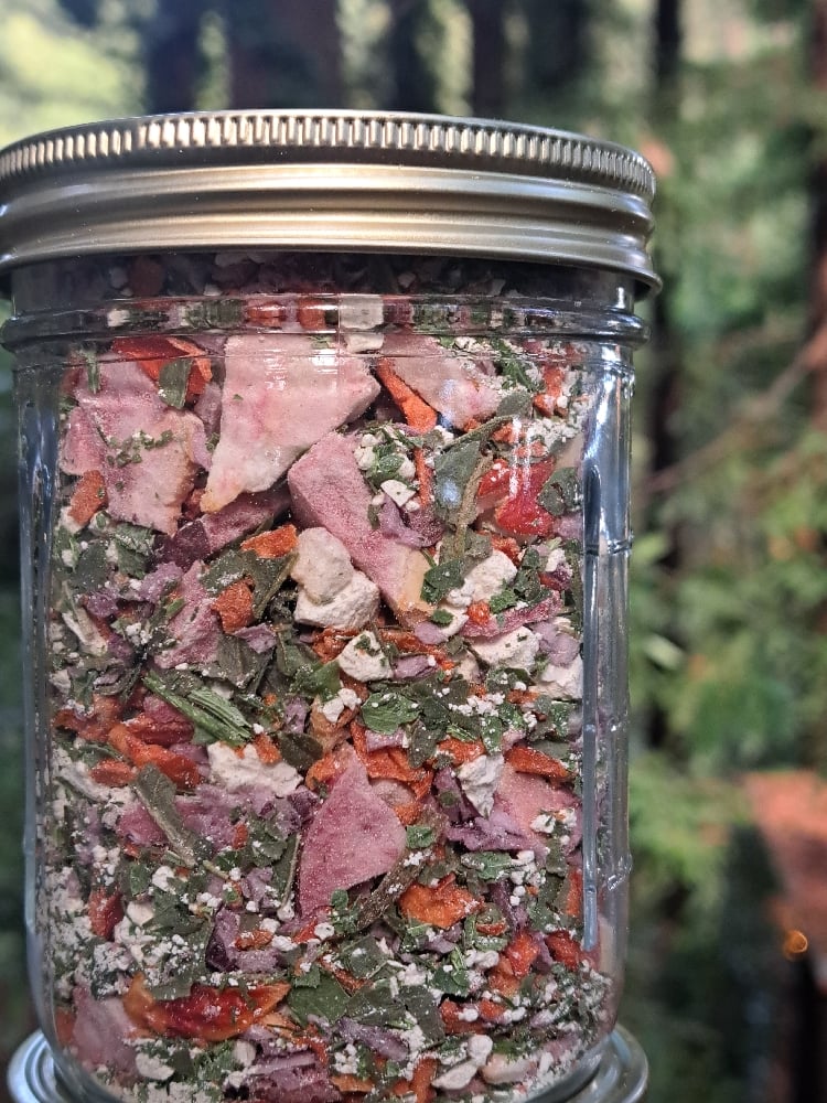 Elevate your salads with my awesome freeze dried salad toppers. Made with 3 kinds of Organic heirloom apples including Organic Pink Pearls, Organic Feta, Organic Red Bell Pepper, Red Onion, Organic Basil, Organic Dill, and Organic Parsley. These tasty freeze dried toppers will add a crunchy, flavorful kick to your salad with out the hassle of chopping and mixing yourself. These would also be quite tasty on some avocado or hummus toast!