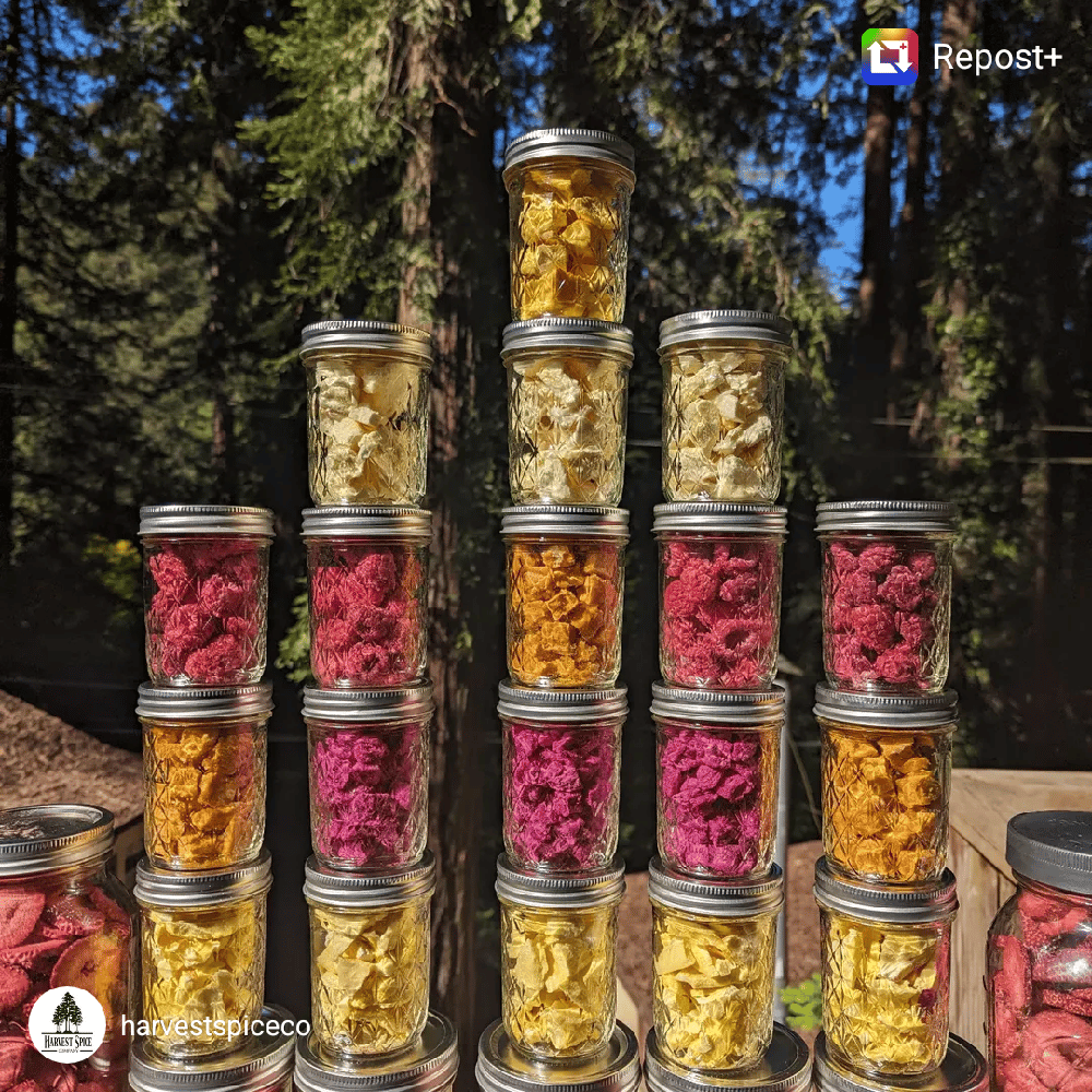 Organic Freeze-Dried Dragon Fruit, Passion Fruit, Pineapple, Jackfruit, Watermelon in a pint or quart mason jar. $13.00 each or 3 for $33.00